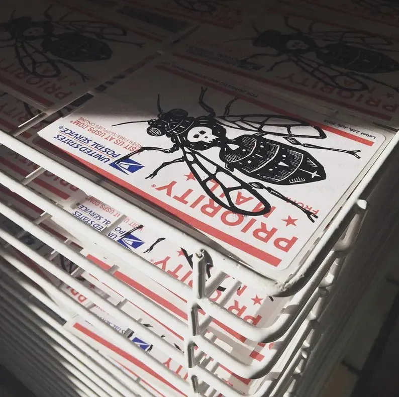 Stickers are printed in small batches using a variety of printmaking techniques, so each pack varies in color, size, and designs. Every pack gets a good mix, including a few limited edition prints.